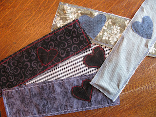 I sewed the hearts on first, and then backed the fabric band with the flannel. I played around with the decorative stitches on my new sewing machine.